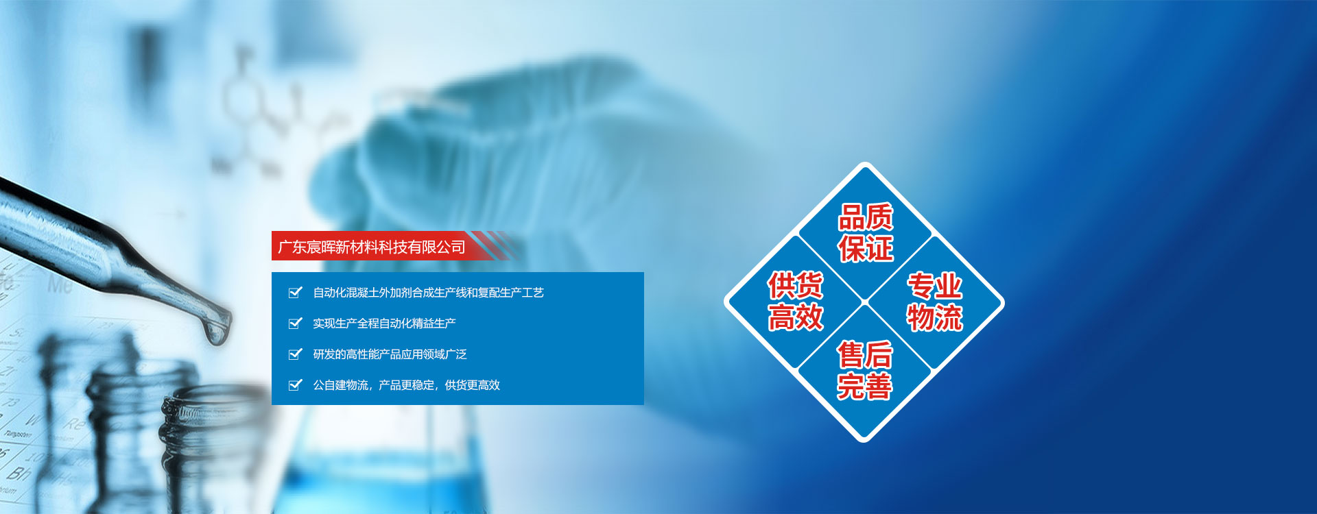 宸辉新材料研发的高性能产品应用于高铁,超越创新,让建筑更加绿色环保、安全亘固。广东宸辉新材料科技有限公司总部坐落在广东省博罗县龙溪街道小蓬岗第一工业产业园区,毗邻东莞城区、惠州、深圳处在粤港澳大湾区经济圈中心地带。公司专注于混凝土外加剂、外墙清洗剂、常温工业清洗剂的研发、生产和销售。目前产品处于行业佼佼者,采用的自动化混凝土外加剂合成生产线和复配生产工艺,实现生产全程自动化精益生产,年产多碳聚羧酸母液A剂、B剂、高效聚羧酸减水剂A剂、B剂、环保外墙清洗剂、工业常温脱脂剂等各类减水剂、清洗剂原液近百万吨。自建物流,产品更稳定,供货更高效。