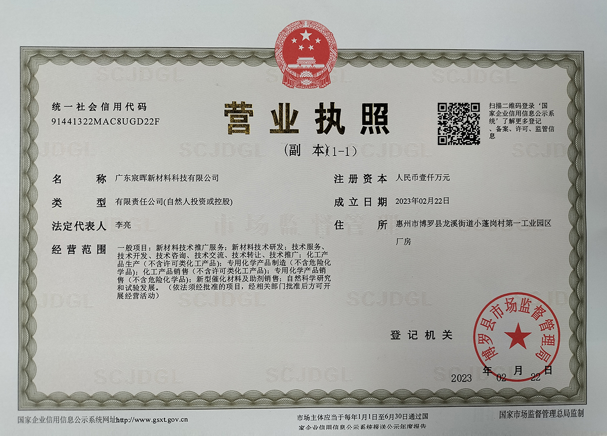 广东宸辉新材料科技有限公司总部坐落在广东省博罗县龙溪街道小蓬岗第一工业产业园区,毗邻东莞城区、惠州、深圳处在粤港澳大湾区经济圈中心地带。公司专注于混凝土外加剂、外墙清洗剂、常温工业清洗剂的研发、生产和销售。目前产品处于行业佼佼者,采用的自动化混凝土外加剂合成生产线和复配生产工艺,实现生产全程自动化精益生产,年产多碳聚羧酸母液A剂、B剂、高效聚羧酸减水剂A剂、B剂、环保外墙清洗剂、工业常温脱脂剂等各类减水剂、清洗剂原液近百万吨。自建物流,产品更稳定,供货更高效。